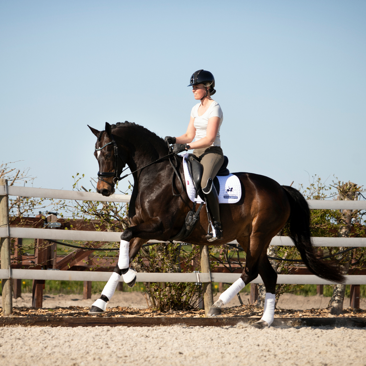 Kenna Bakker begeleid diverse talentvolle combinaties in de dressuursport, die ieder op zijn/haar niveau aan de slag gaan om beter te worden. Kenna heeft de instructie opleiding ORUN niveau 4 behaald.